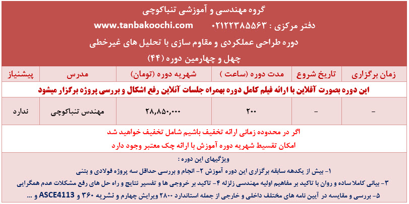 دانلود دستورالعملها و آیین نامه های مربوط به دوره آموزش تحلیل غیرخطی و بهسازی لرزه ای سازه ها